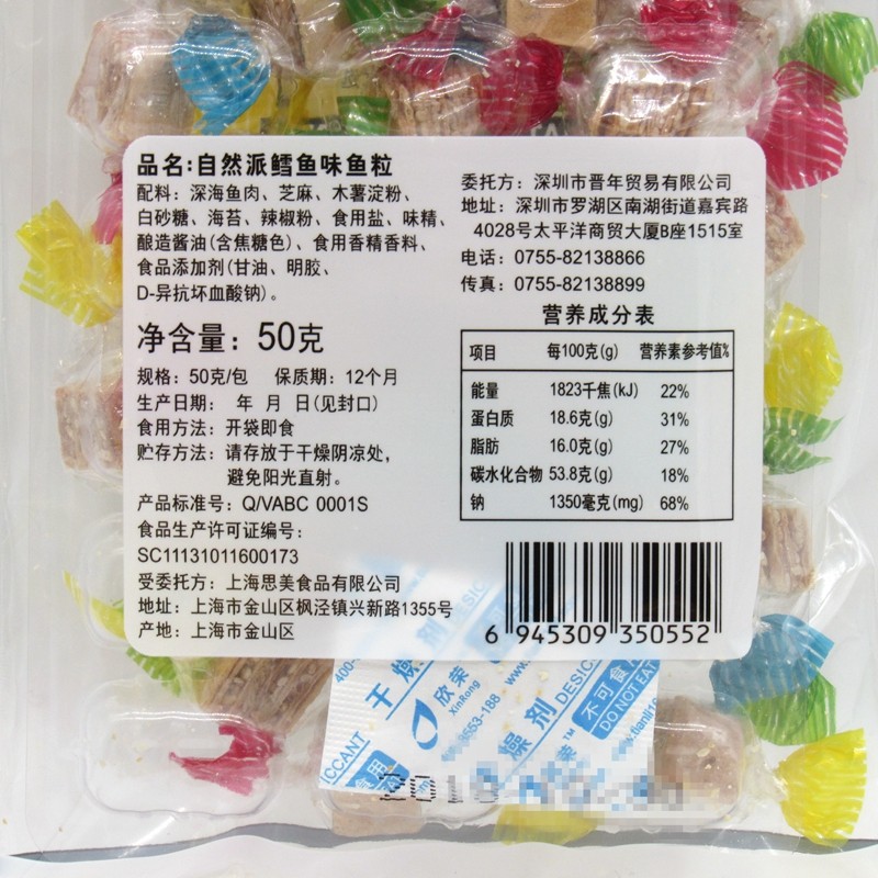 Deep-sea fish sesame cassava starch white sugar sea moss chili powder, etc.
