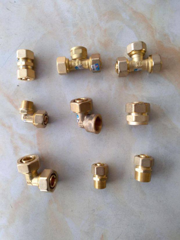 Foshan Rifeng aluminum-plastic composite pipe fittings copper joint 1216*1 2 with seat 4 minutes inner tooth elbow nickel plating