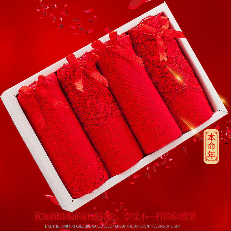 Underwear women's cotton crotch modal mid-waist is a tiger 2022 natal year red seamless new year sexy ladies lace