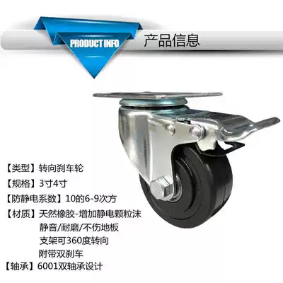 3 inch 4 inch universal wheel anti-static caster high-elastic rubber silent caster double bearing conductive wheel plug wheel