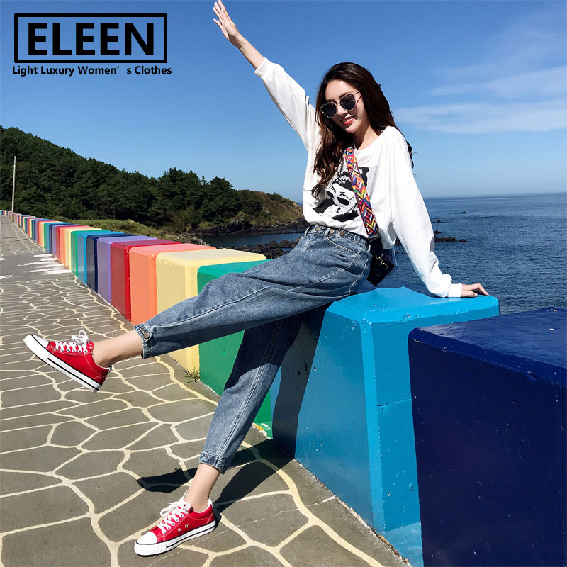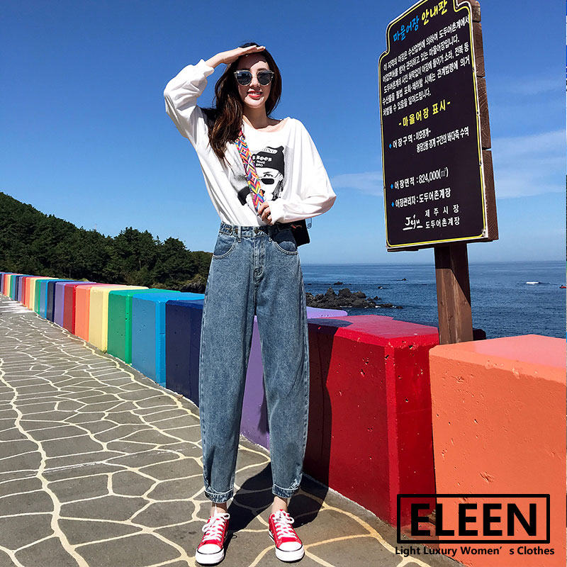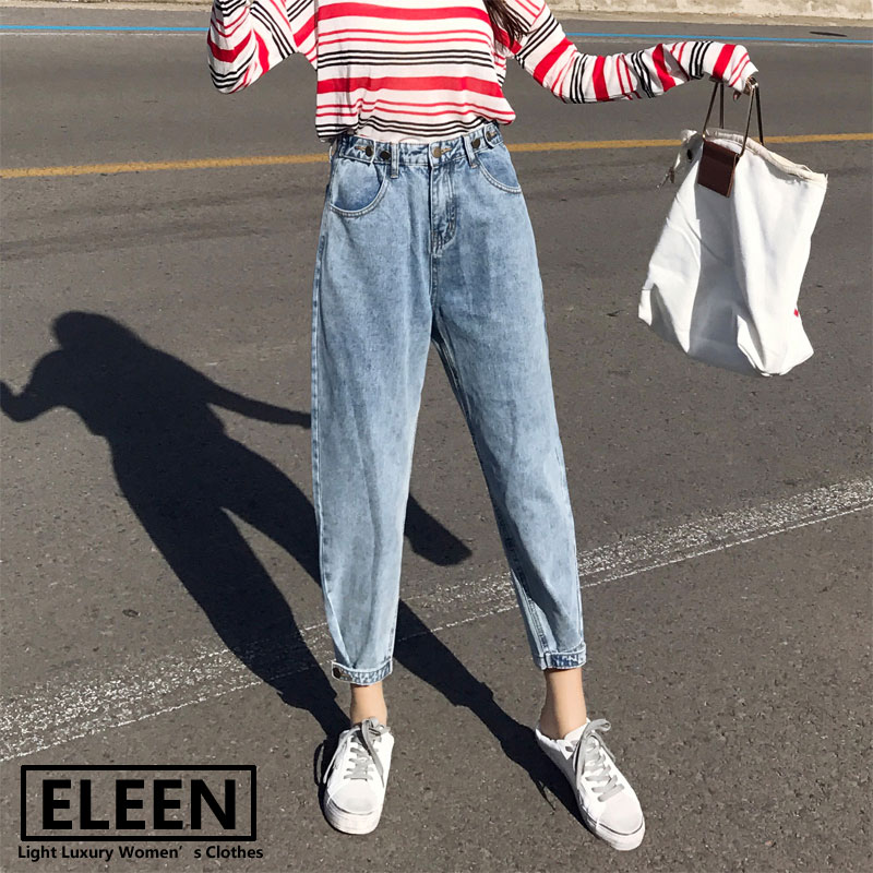 Hong Kong 2020 Fall new gush high waist loose jeans 90% pants Harun pants straight drum Radish Pants Woman