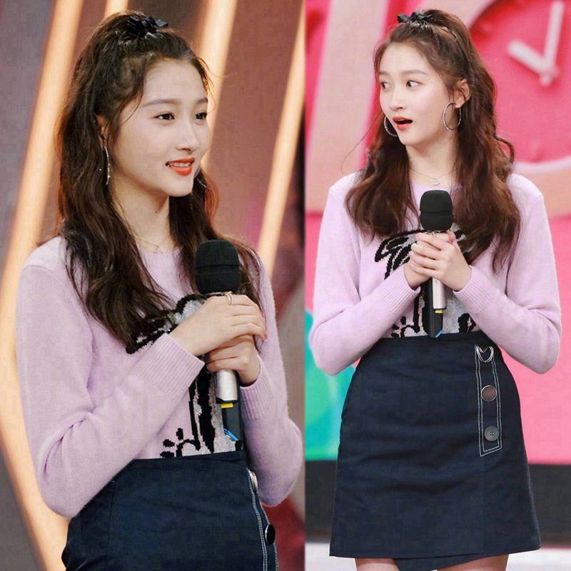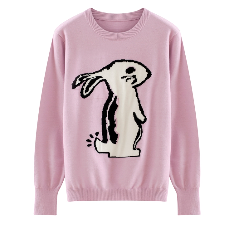 Hong Kong Guan Xiaotong star with the same winter pink round neck white rabbit self-cultivation bottoming knitted sweater sweater top women