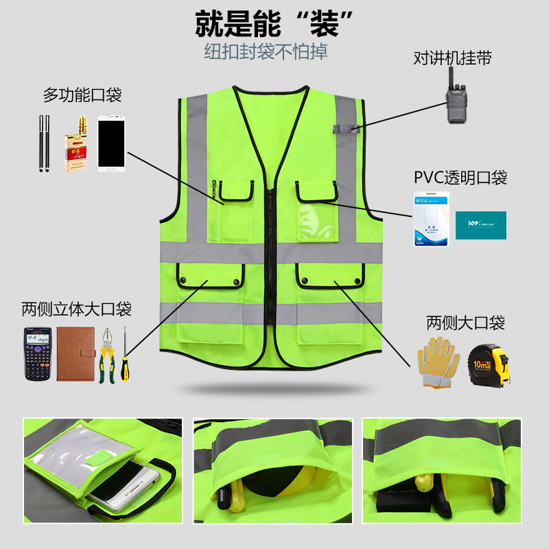 Leading reflective vest construction site safety protective clothing multi-pocket traffic road administration sanitation vest car annual review