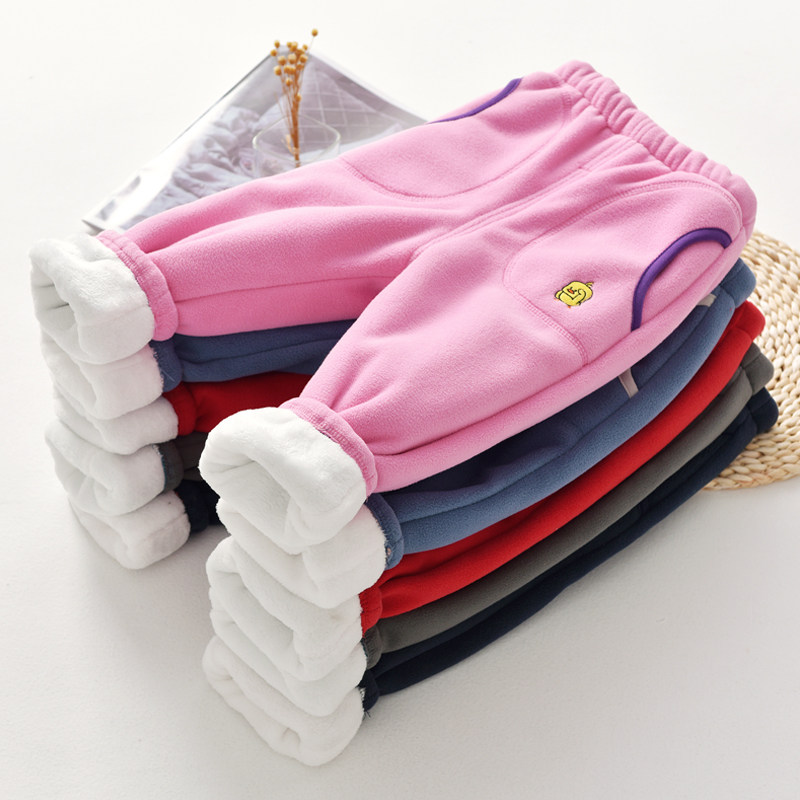 Children's pants plus velvet thickened a winter men's and women's sports pants baby fleece cotton pants hot and warm pants