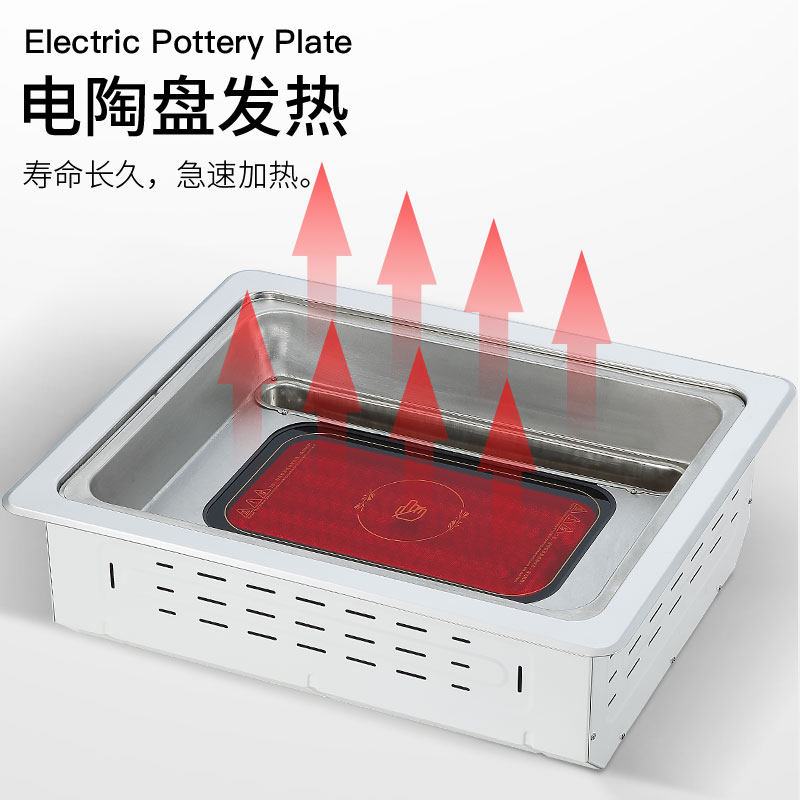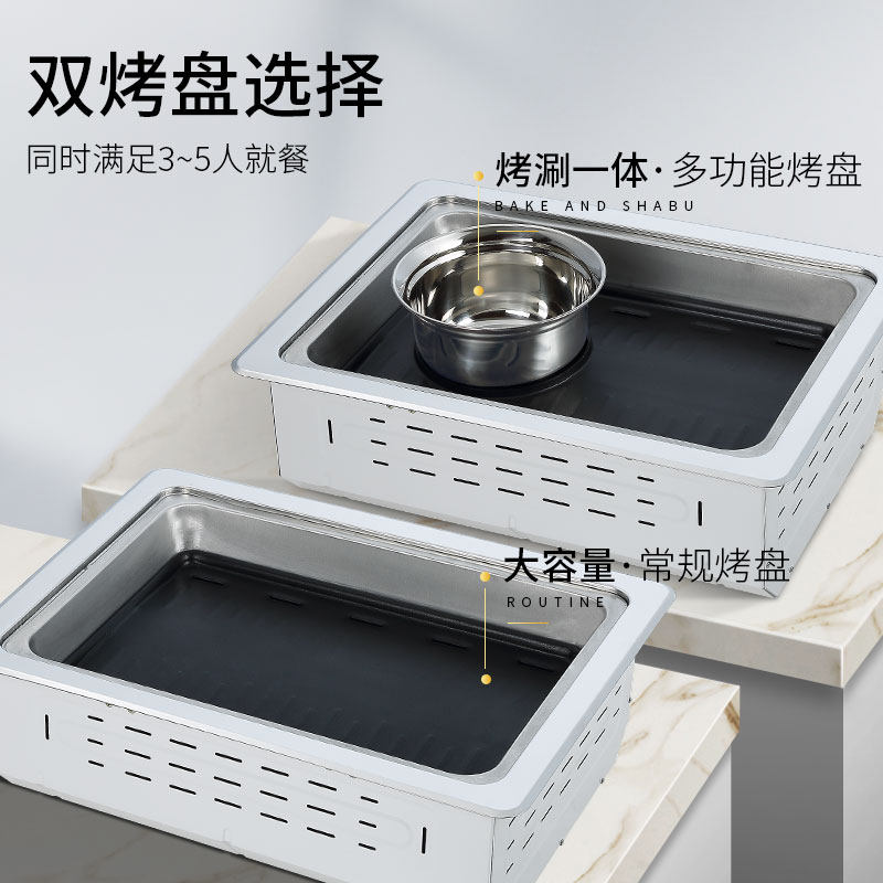 Upper smoke exhaust square electric oven + conventional baking plate Upper smoke exhaust square electric oven + baking shabu integrated dish
