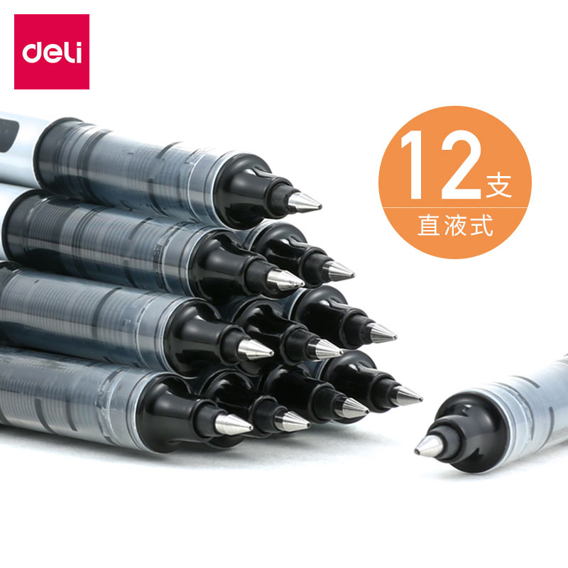 Deli stationery straight liquid water-based ballpoint pen Examination water-based signature pen Office business black pen Student neutral pen wholesale