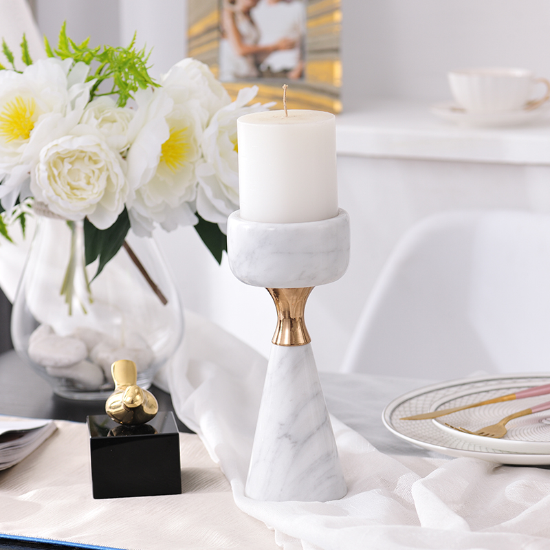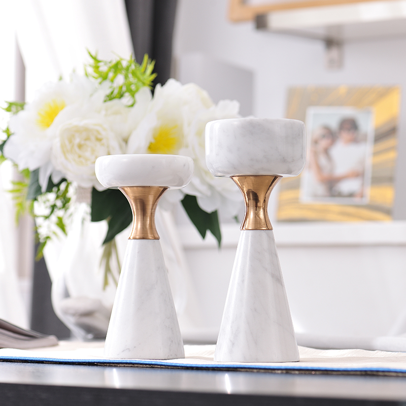 Home creative marble metal light luxury household candlestick ornaments candle holder dining table candle holder candle holder Nordic