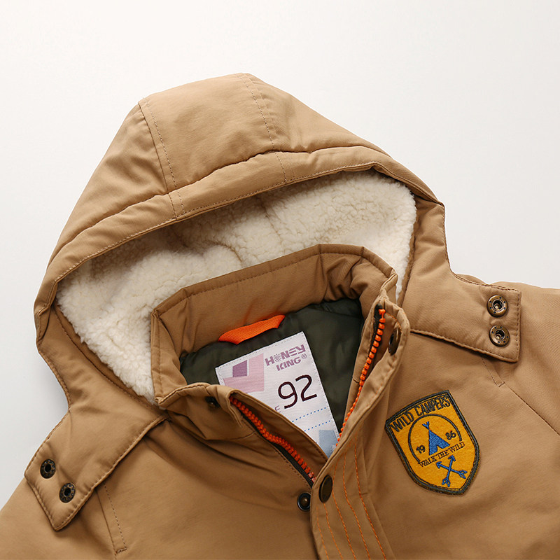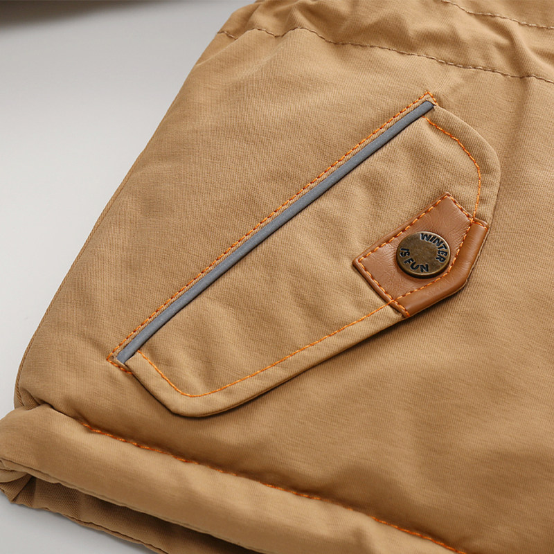 Boys' cotton-padded clothes new Korean version of khaki winter clothes children's clothing waist windproof cotton-padded jacket children's baby thickened hooded jacket