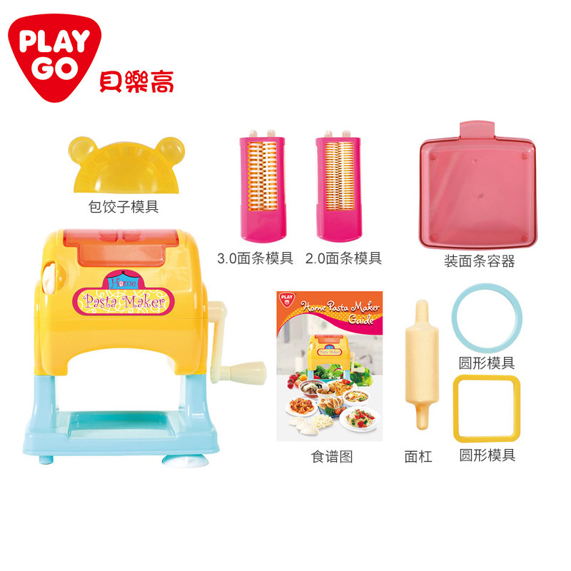 playgo Belle High children's toy noodles machine kitchen posing as a family wine pressing face to make handmade food and fun to eat