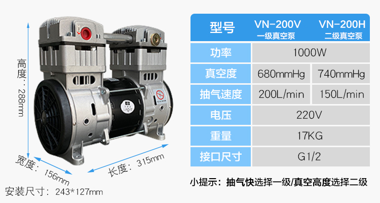 Jianyue VN-200V oil-free vacuum pump industrial drying machine silent maintenance-free pump large flow