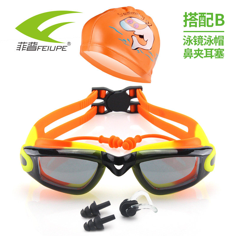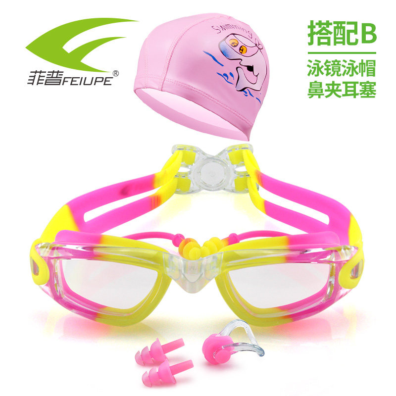 Blue and white blue nose clip earplugs blue white blue swimming cap blue nose clip earplugs pink yellow pink nose clip earplugs pink yellow pink swimming cap pink nose clip earplugs black orange black nose clip earplugs black orange orange swimming cap black nose clip earplugs