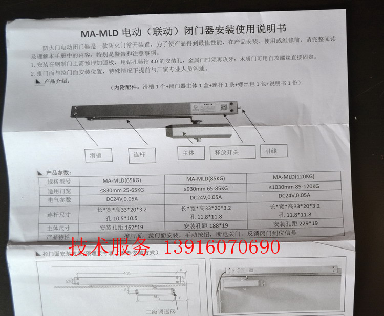 Original Deep Ming An Electric Docker MA-MLD (65KG) Fire Door Electric Automatic Closer