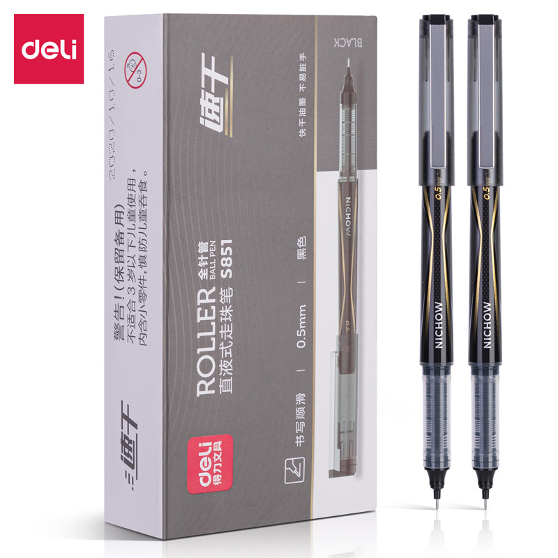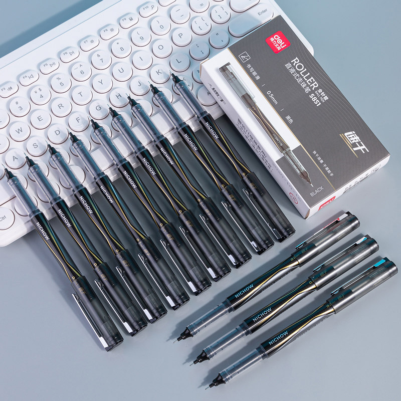 Deli S851 straight liquid walking ballpoint pen neutral pen can be exchanged for core pen 0.5mm black full syringe water pen 12 pieces Student personality creative business office water pen signature pen