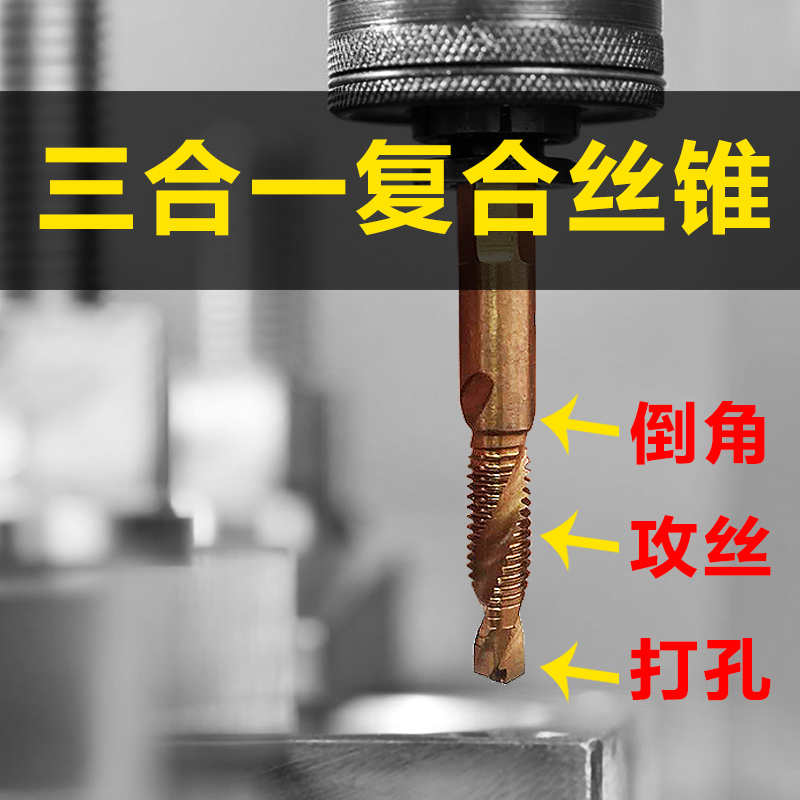 Drilling and tapping one-piece composite screw tapping screw machine with cobalt-plated titanium hexagonal shank drill bit chamfering knife m3-M12