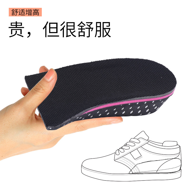 Height-increasing insole women's full-pad small white shoes 3cm5cm invisible inner heightening half-pad Martin boots comfortable and breathable inner real high