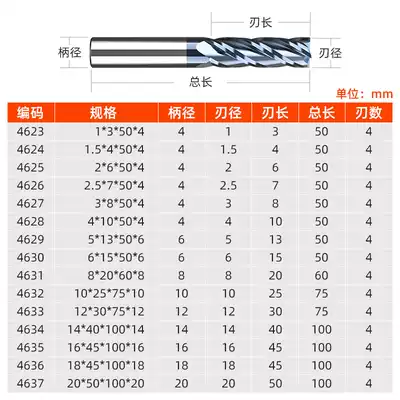 45 ° four-edged tungsten steel end mill 1*50 * 4D 45 ° four-edged tungsten steel end mill 1 5*50 * 4D 45 ° four-edged tungsten steel end mill 2*50 * 4D 45 ° four