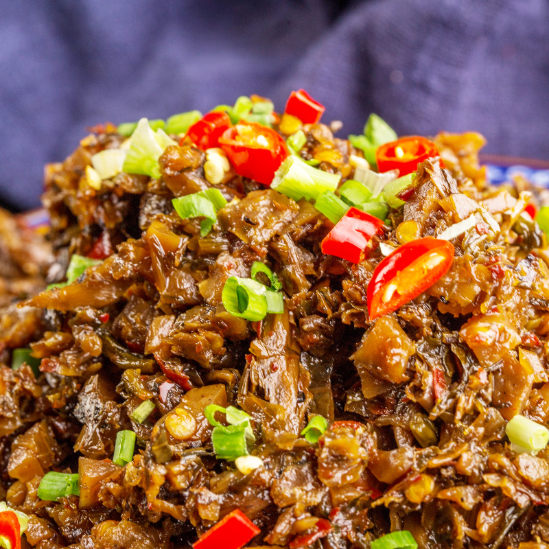Rounder strips of plum vegetables dried bean corner chilli bamboo shoots mushrooms and so on
