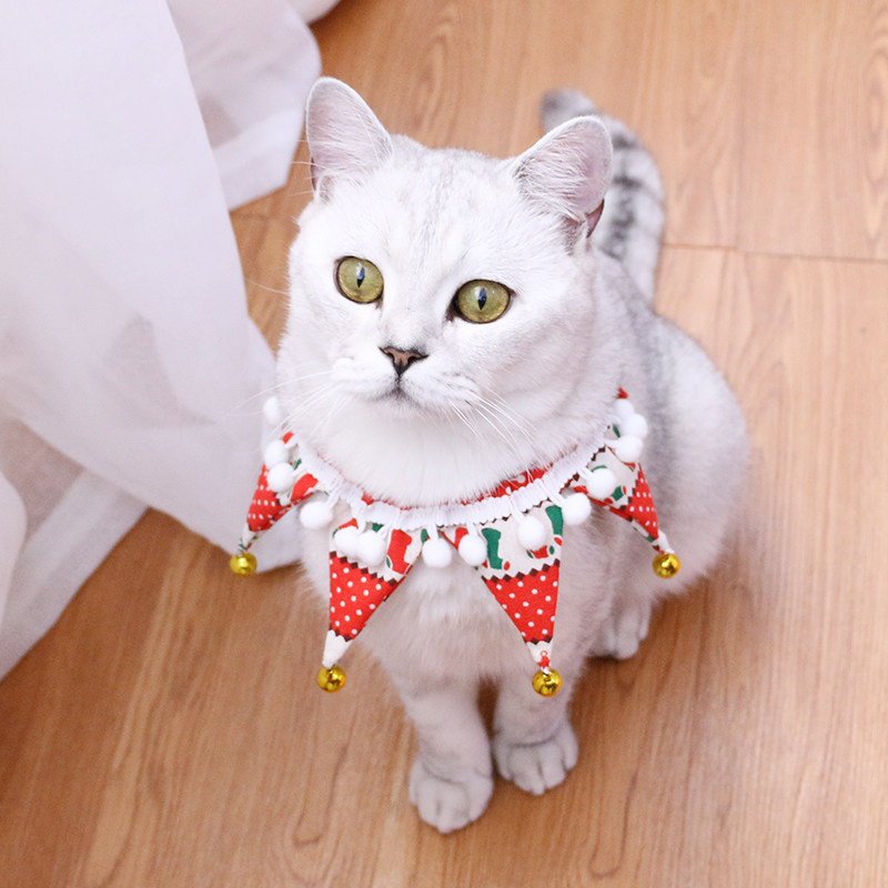 Kitty lead knot bell English short dog saliva towel decorated with pet ornament cat necklace New Year's kitty neckline