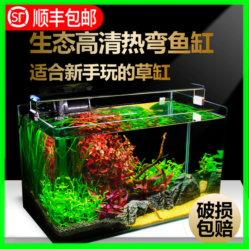 Small desktop living room household glass mini fish tank aquarium landscaping ecological living body real water grass goldfish tank