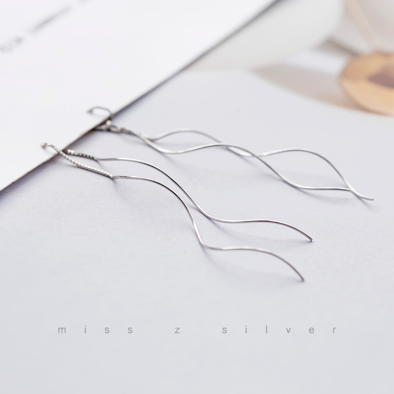 Wave earrings Femininity Pure Silver Earrings 2022 New Tide Earrings Woman Temperament Long Version Earrings Silver Earrings