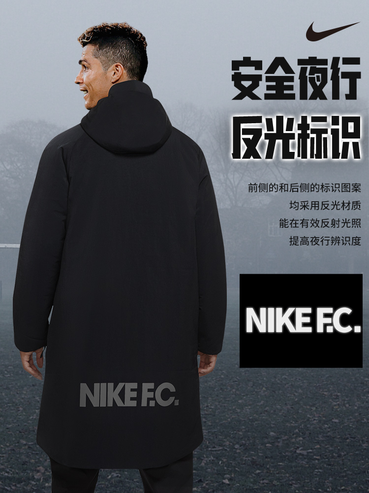 Nike long cotton clothes overknee cotton clothes men's winter warm cotton padded jacket with cap coat CT2515 893799-010-Taobao