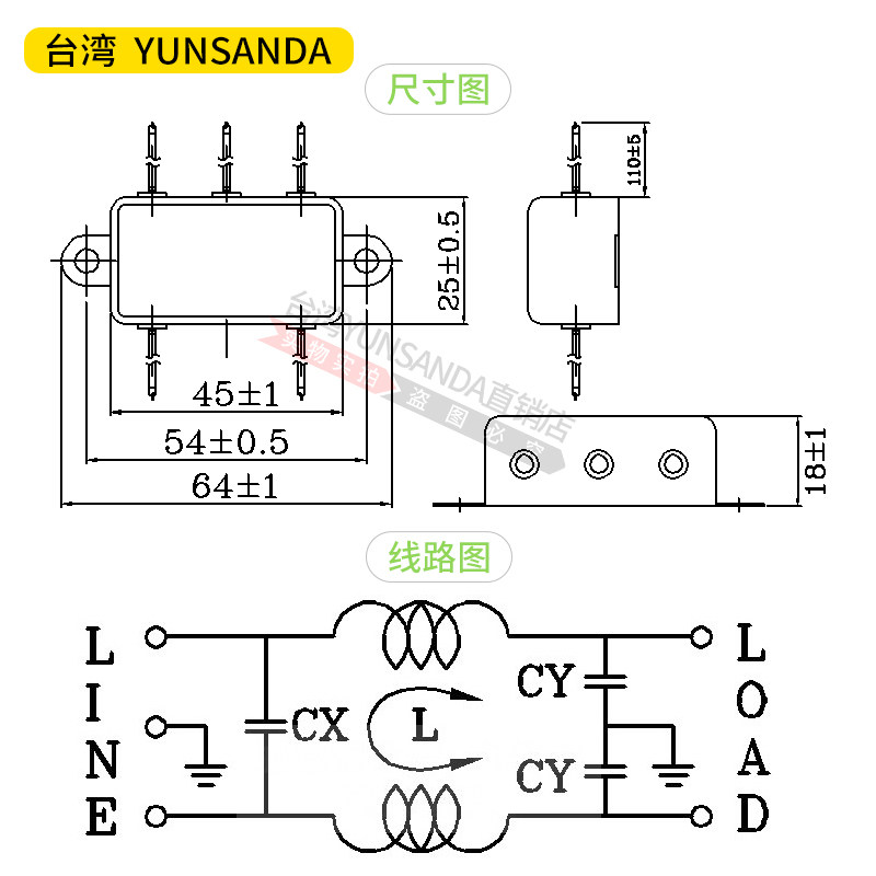 Taiwan YUNSANDA single phase AC filter 220VCW1B-3A 6A 10A-L (05)Low pass band line