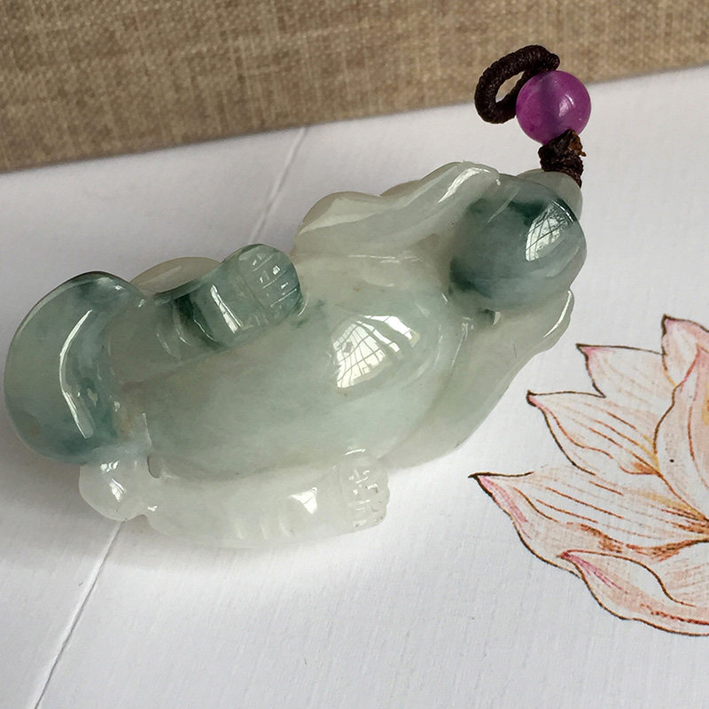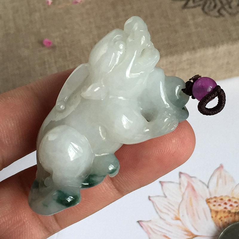 Emerald leopard pendant male and female with jade A cargo floating flowers Ruyi Lovers Pendant lovers Pendant Handcrafted