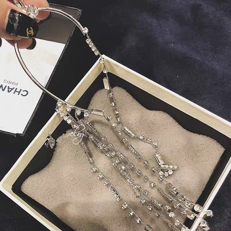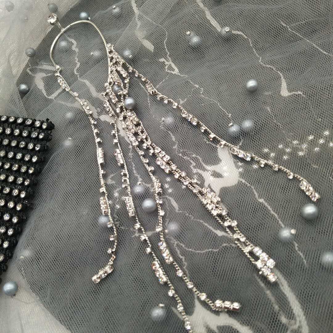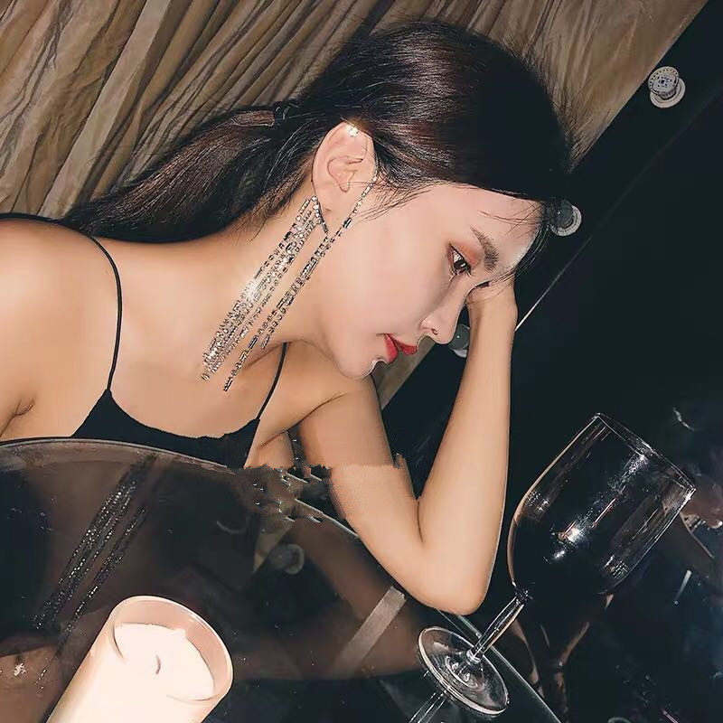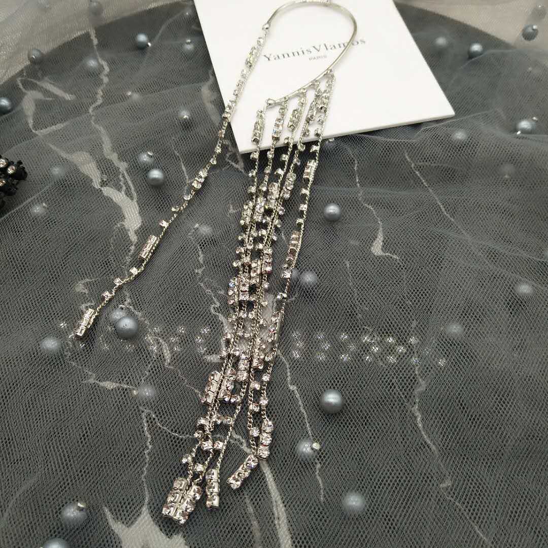 Net red with the same luxurious water drill flow Sulong earrings inlaid drill retro name Zircon Zircons Stones Exaggerated Ear Pendant Ear Clip
