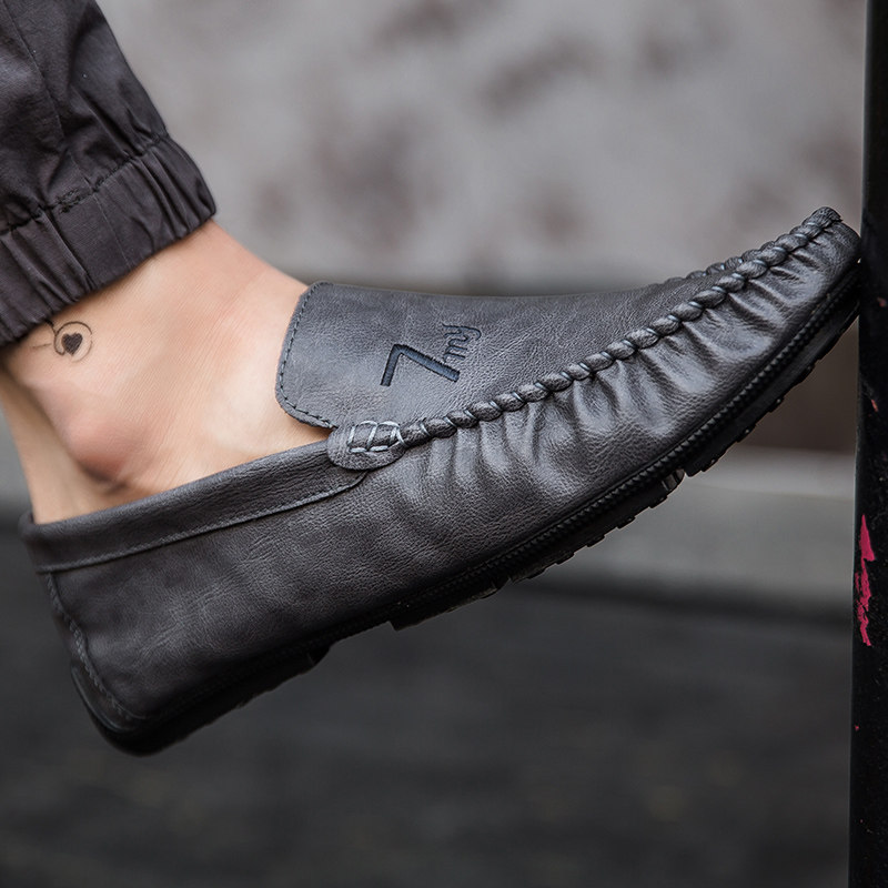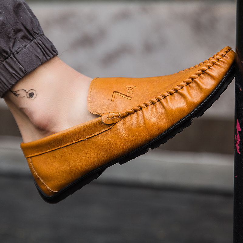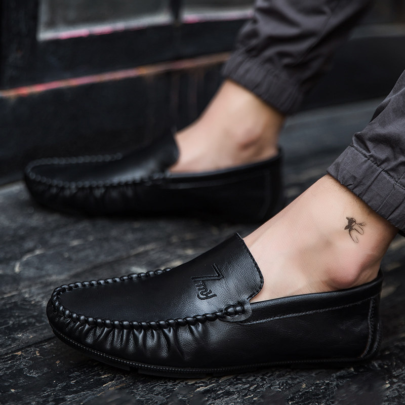 Doudou shoes men's spring and summer casual leather shoes Korean trend fashion driving shoes soft leather men's shoes slip-on shoes