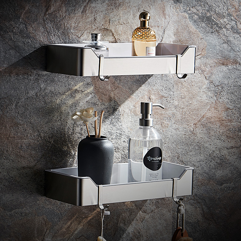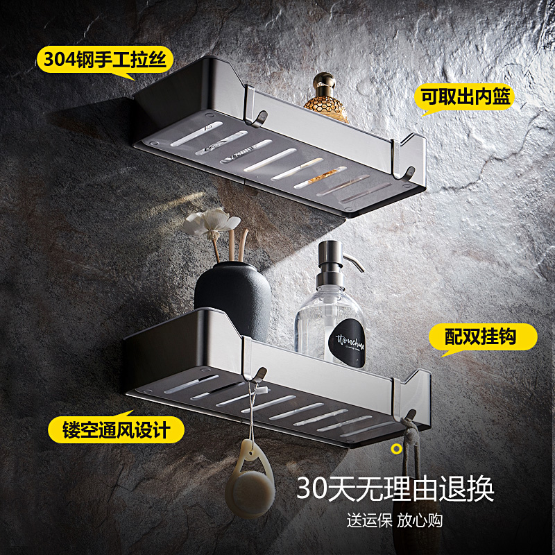 304 stainless steel toilet wall-mounted thick rectangular mesh basket non-perforated double-layer bathroom storage rack