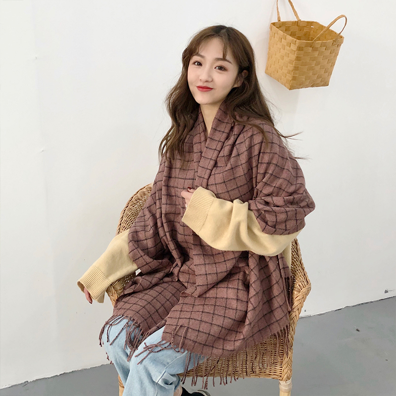 Scarf female autumn and winter Korean version of the wild student ins girl thickening warm plaid oversized spring and autumn shawl scarf