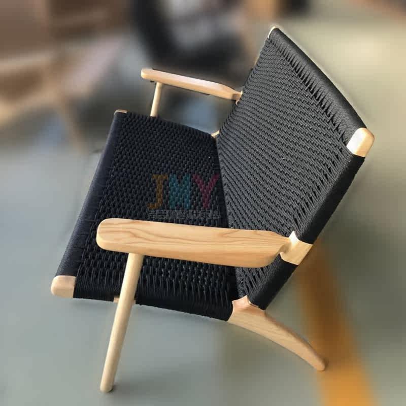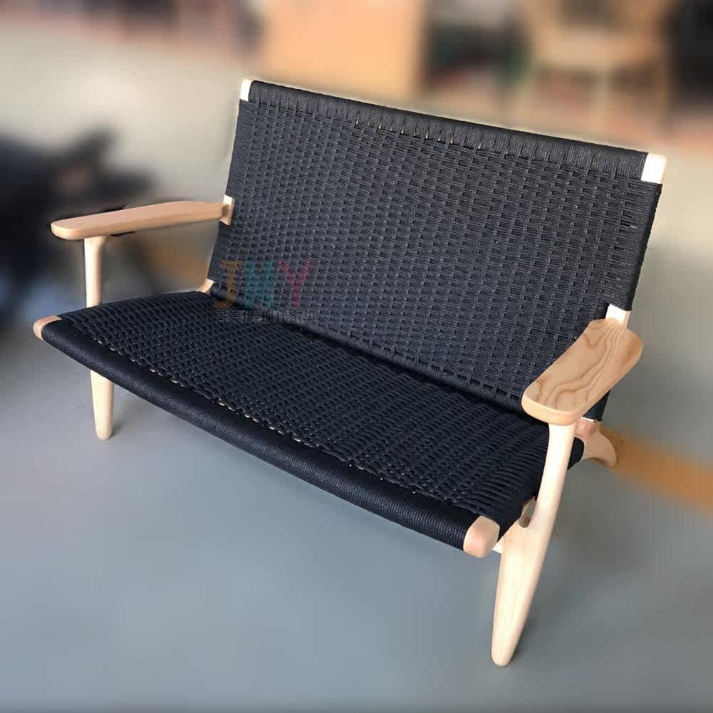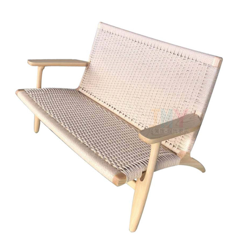 Nordic solid wood leisure chair double sofa chair small apartment living room household backrest recliner wooden rattan chair