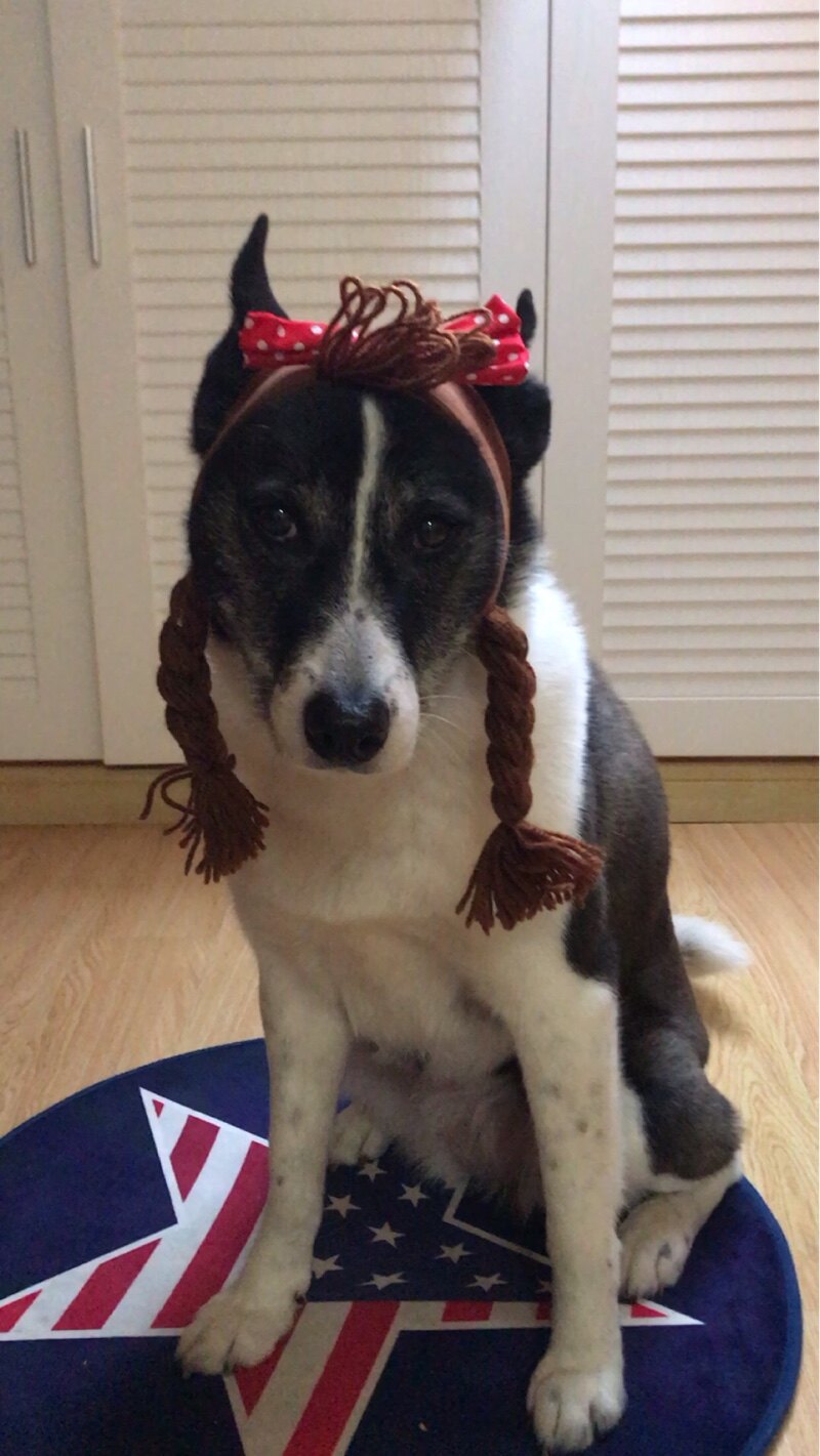 Cute pigtails dating blind date hat headdress method fight Keji Shiba Dog large dog pet dog funny headgear