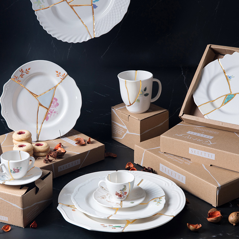 Italian seletti gold plate ceramic dinner plate high-end light luxury ins tableware bone china handmade set