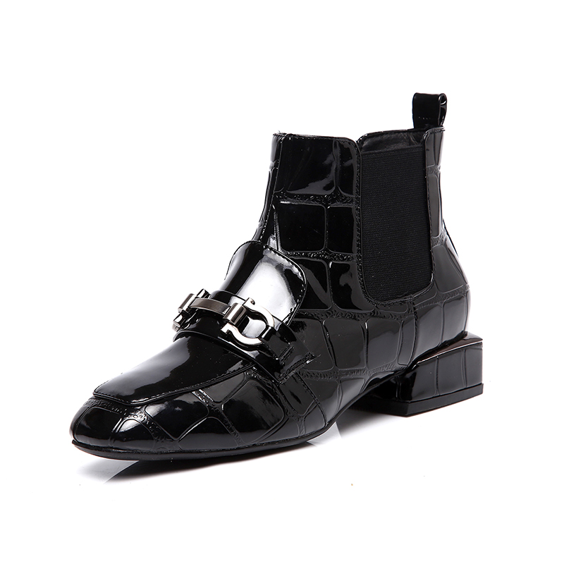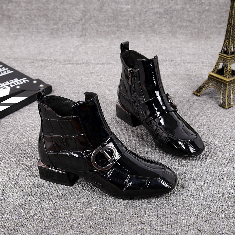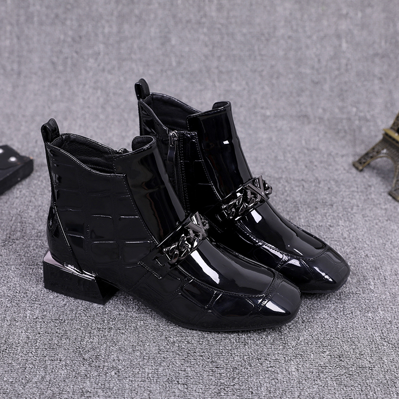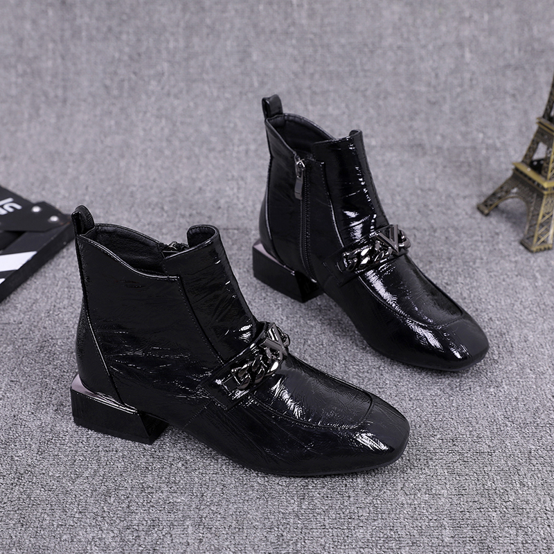 Broken Yard Clear Cabin No Back to paint Paint leather plus velvet Martin boots Inn wind side pull chain square head short boots thick heel nude boots