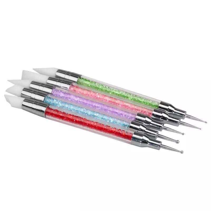 Nail double-headed silicone pen Nail embossing stick Dual-use point drill pen Carving pen tool Nail embossing pen