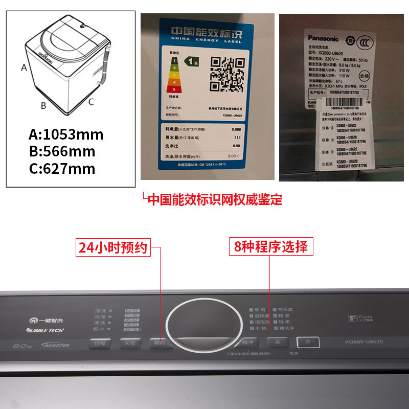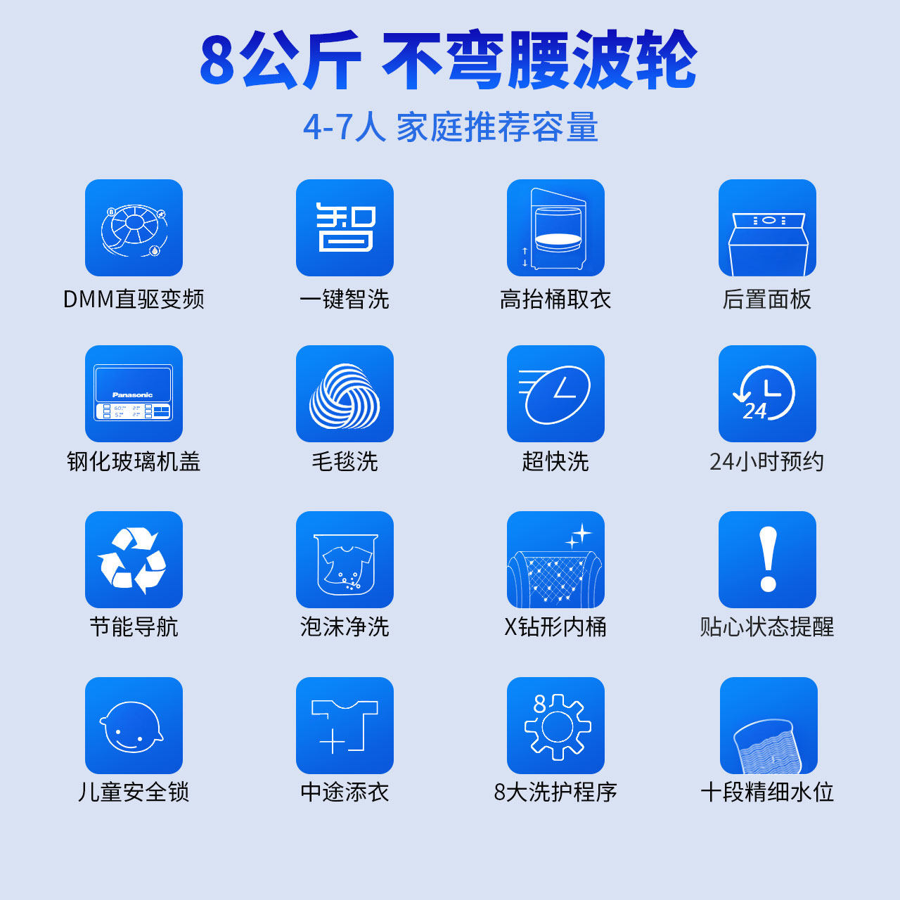 Panasonic XQB80-U8620 8kg high capacity variable frequency conversion wave wheel washing machine