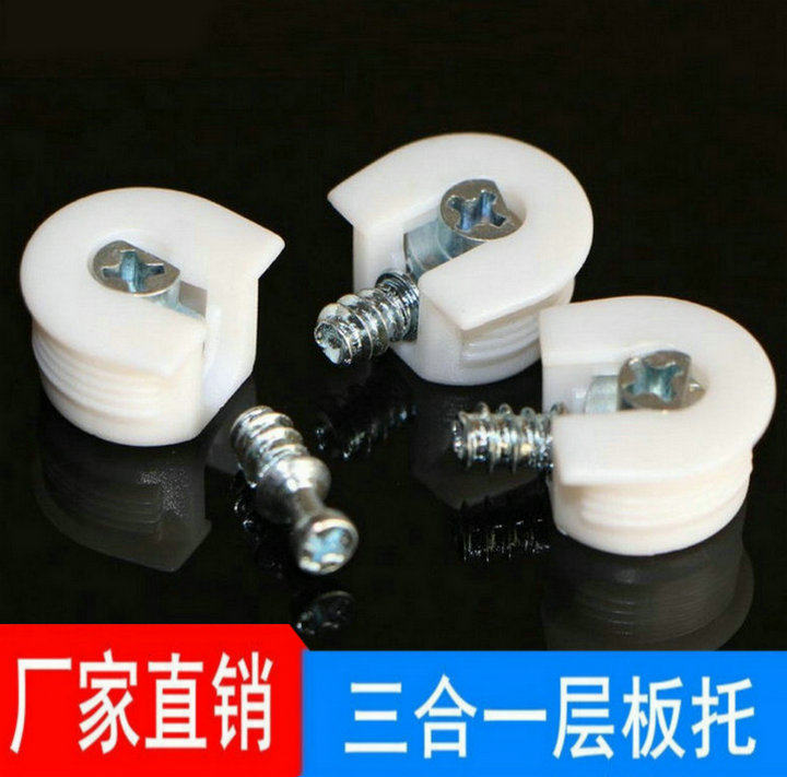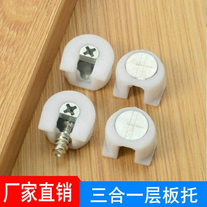 Furniture zinc alloy three-in-one laminate holder connector wardrobe partition holder white plastic two-in-one laminate nail