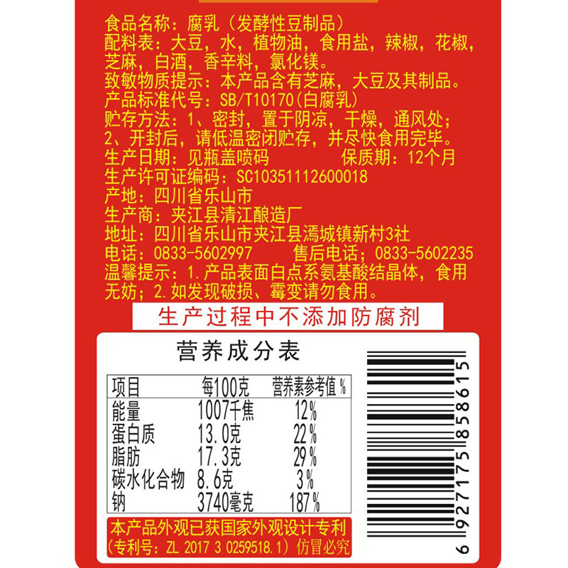 Jiajiang spicy tofu lactobacillus tofu Sichuan specialty breakfast under rice pickle hot pot seasoned bibimbap 700g * 1 bottle