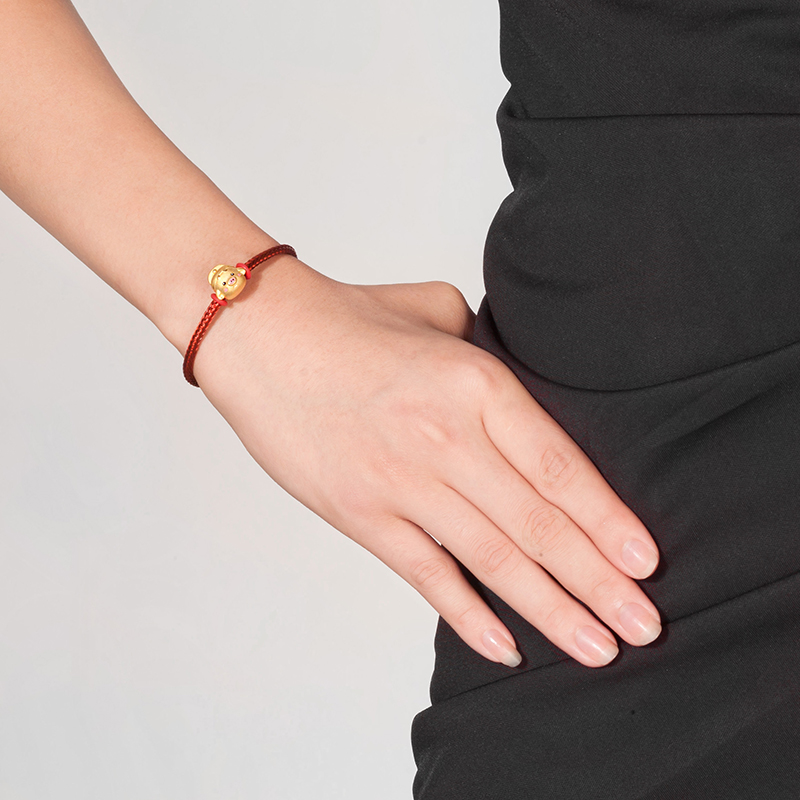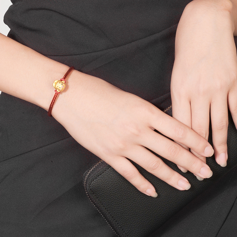 Golden Official Human Pig Transfer Beads-(Free red leather rope 17cm, please place an order note for other sizes)