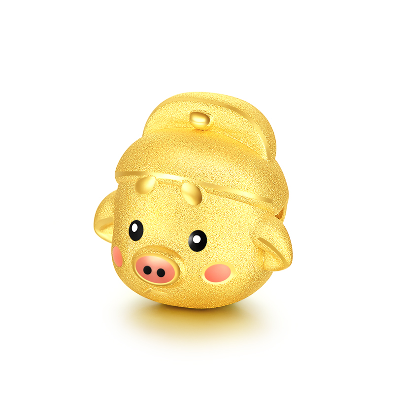 Liuguifu jewelry officer pig gold transfer beads 3D hard gold enamel foot gold pig zodiac year male and female hands