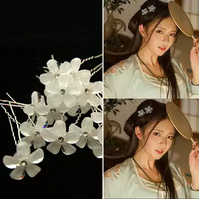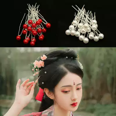 Hair accessories new hair fork U-shaped red and white flower accessories