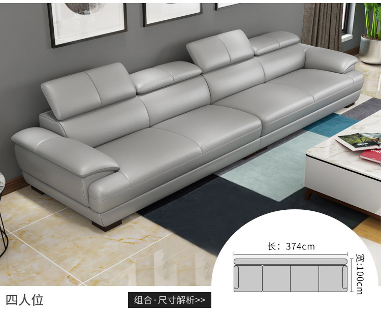 Minimalist leather sofa head layer cowhide three-person Nordic small apartment modern minimalist 18m double leather art sofa
