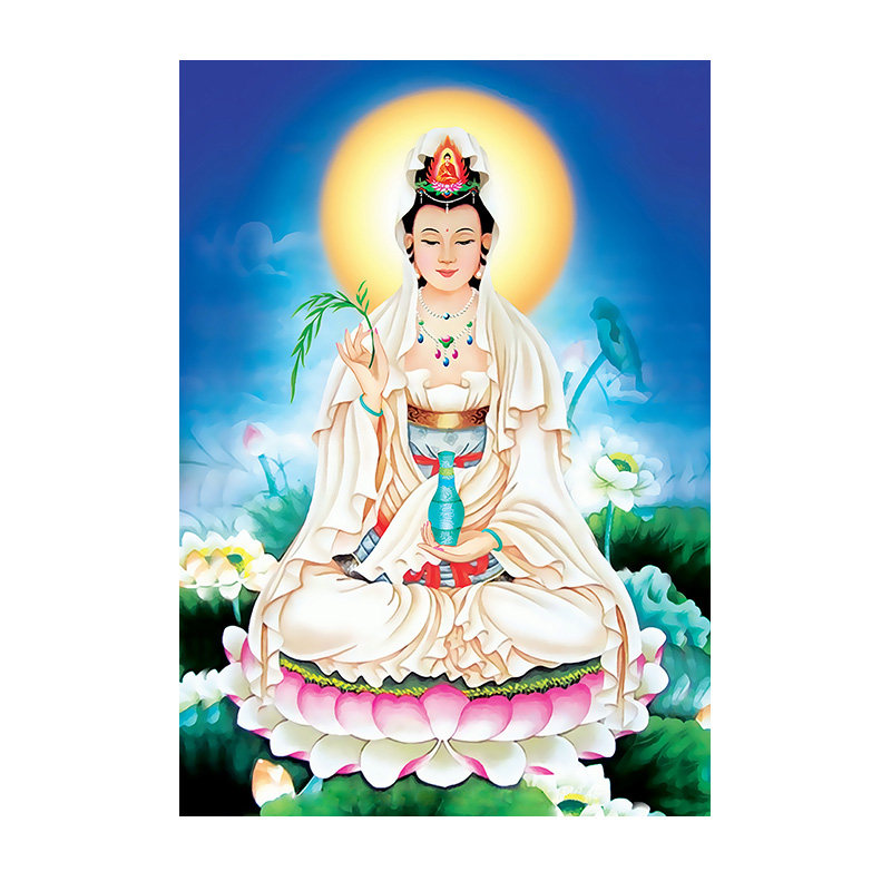 Knot Edge Vertical Version Hand-painted Dripping Water Sat Lotus View of the SittBodhisattBodhisattBodhisattva Buddha Statue of Buddha Guanyin Portrait Photographic Plastic