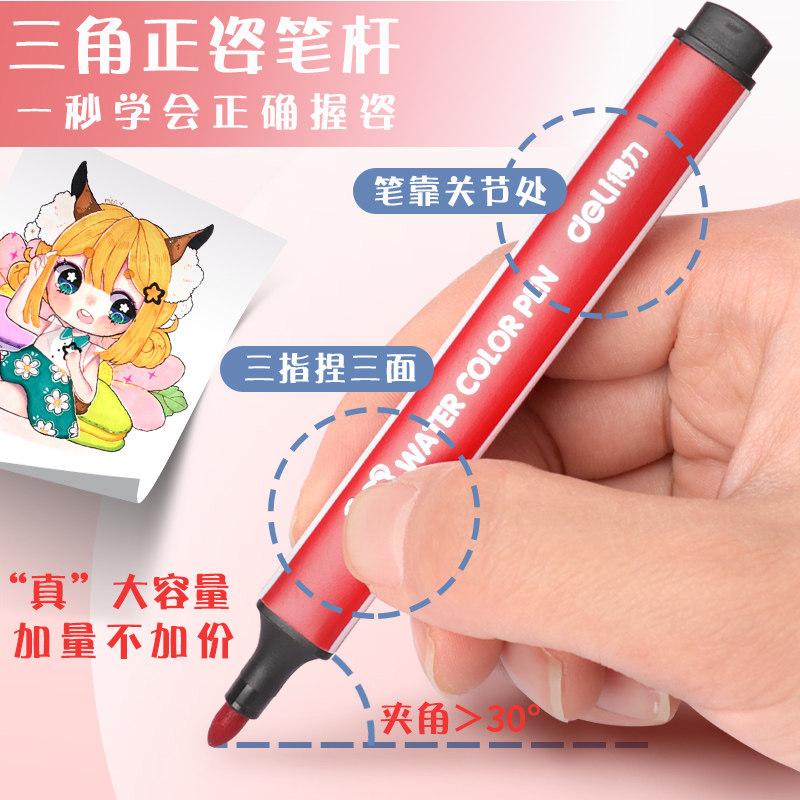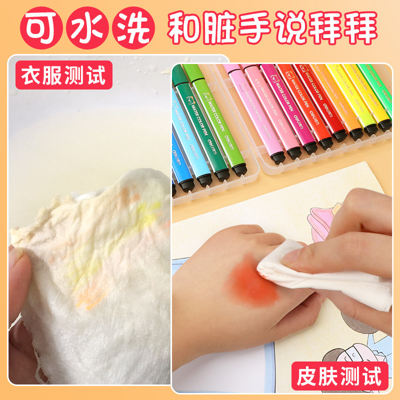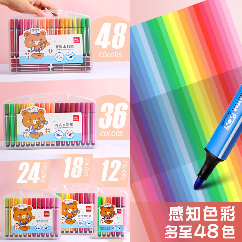 Deli watercolor pen set 24 colors 36 colors Safe and non-toxic washable kindergarten baby children's soft head primary school painting brush 12 colors baby graffiti beginner hand-drawn color pen Art special