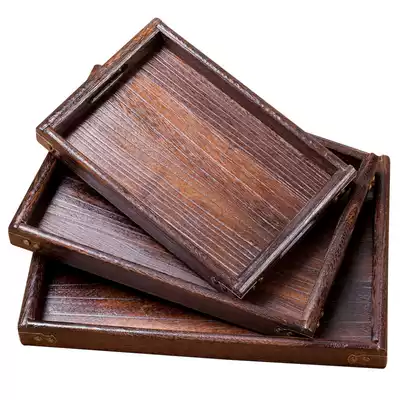 Pastoral style Japanese solid wood tea plate tray Hotel teahouse fruit plate Snack plate Rectangular wooden dinner plate set