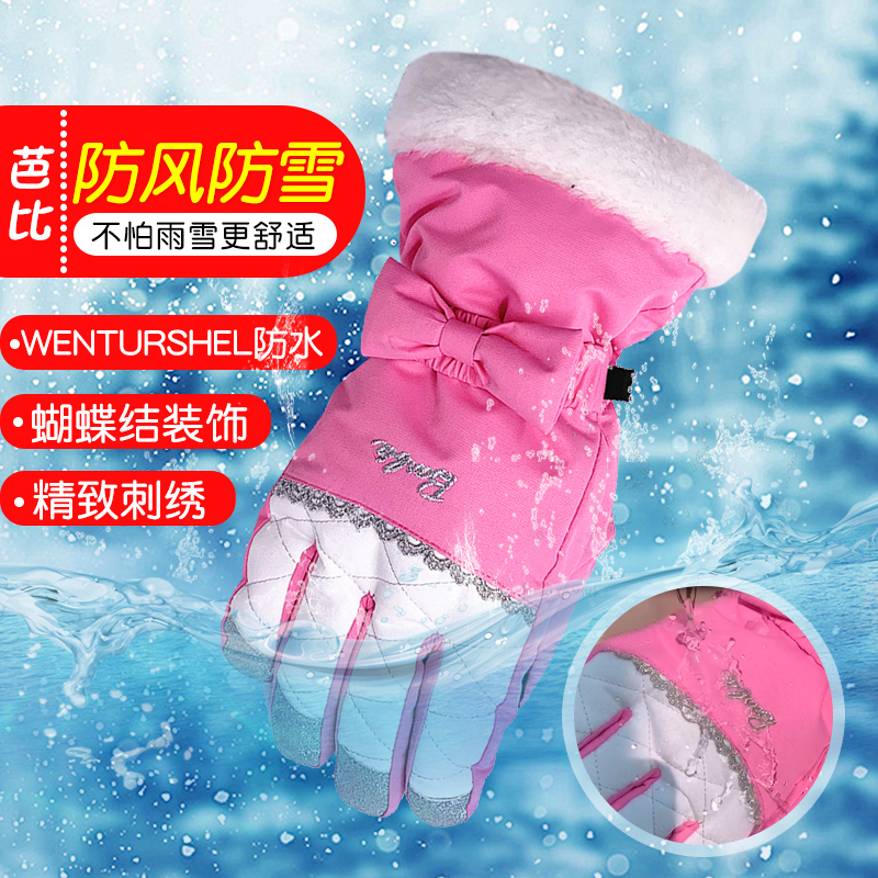 Winter gloves Women and girls parent-child five-finger touch screen outdoor snow riding windproof waterproof warm ski gloves