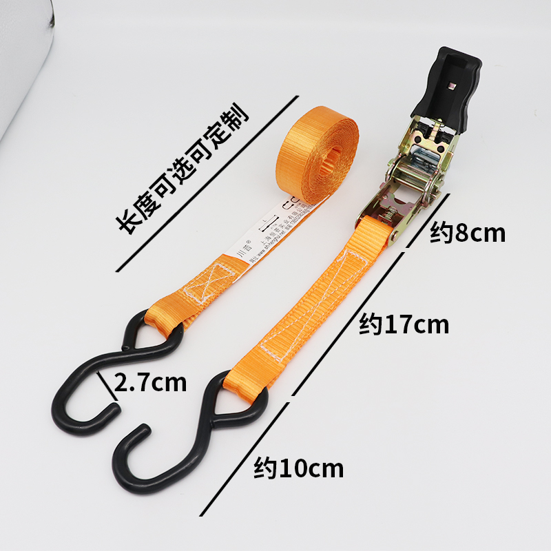 Double hook binding belt tensioner width 25mm plastic handle coating S hook polyester fiber cargo packing belt ratchet rope tensioner
