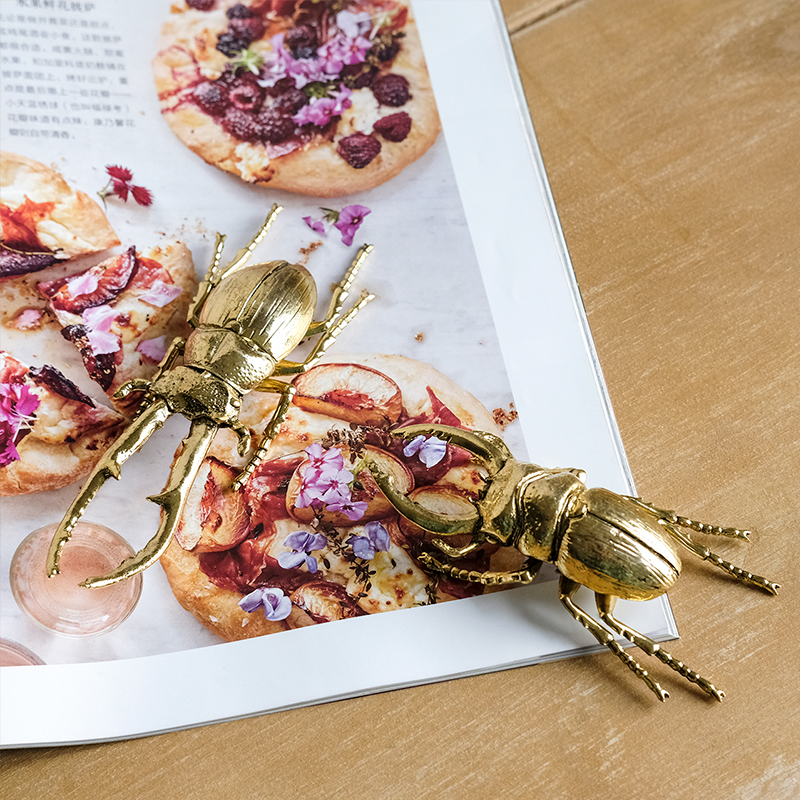 Golden Small Animal Insect Deer Antlers Great Beetle Nordic Ins Specimen Pendulum Table Metal Town Paper