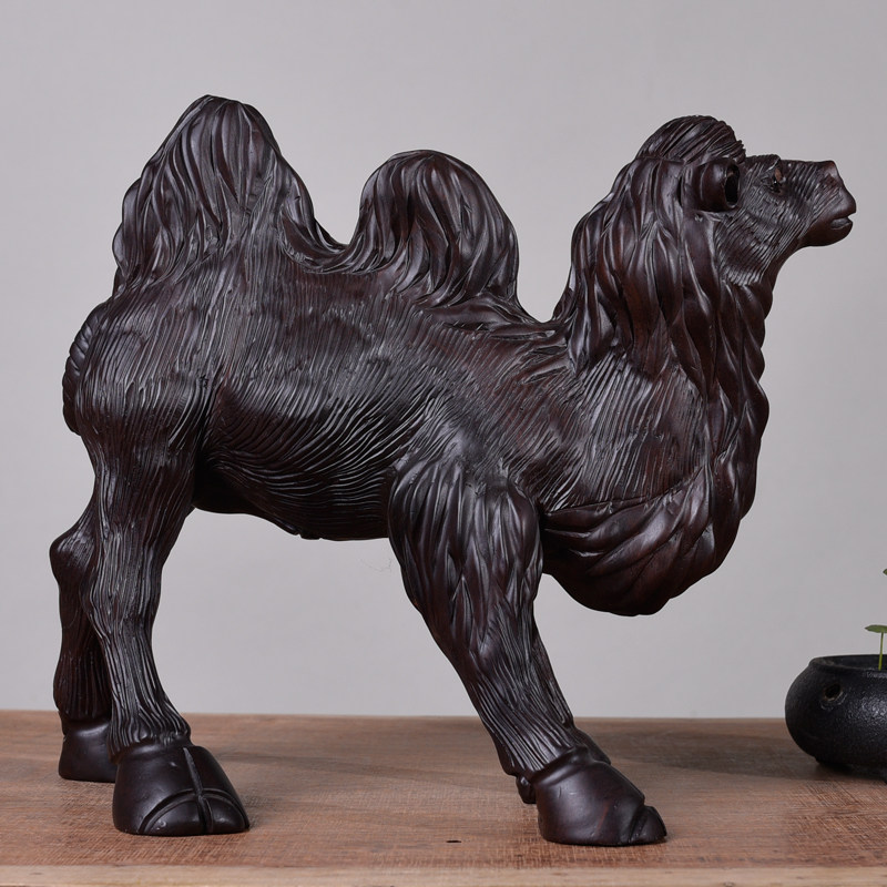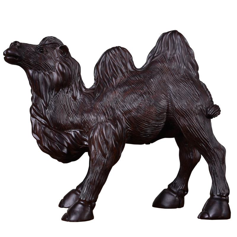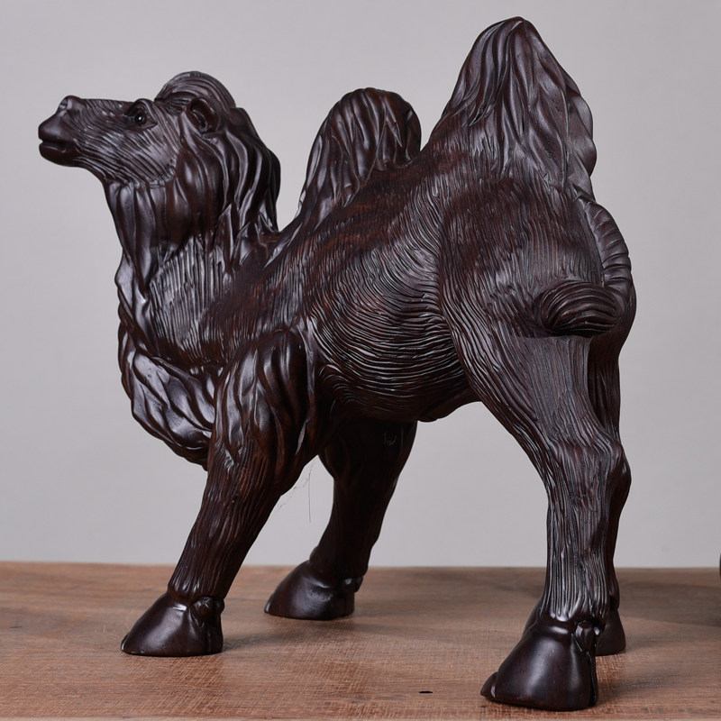 Ebony Wood Carving Camel Ornament Solid Wood Desert King Feng Shui Home Living Room Office Decoration Mahogany Crafts